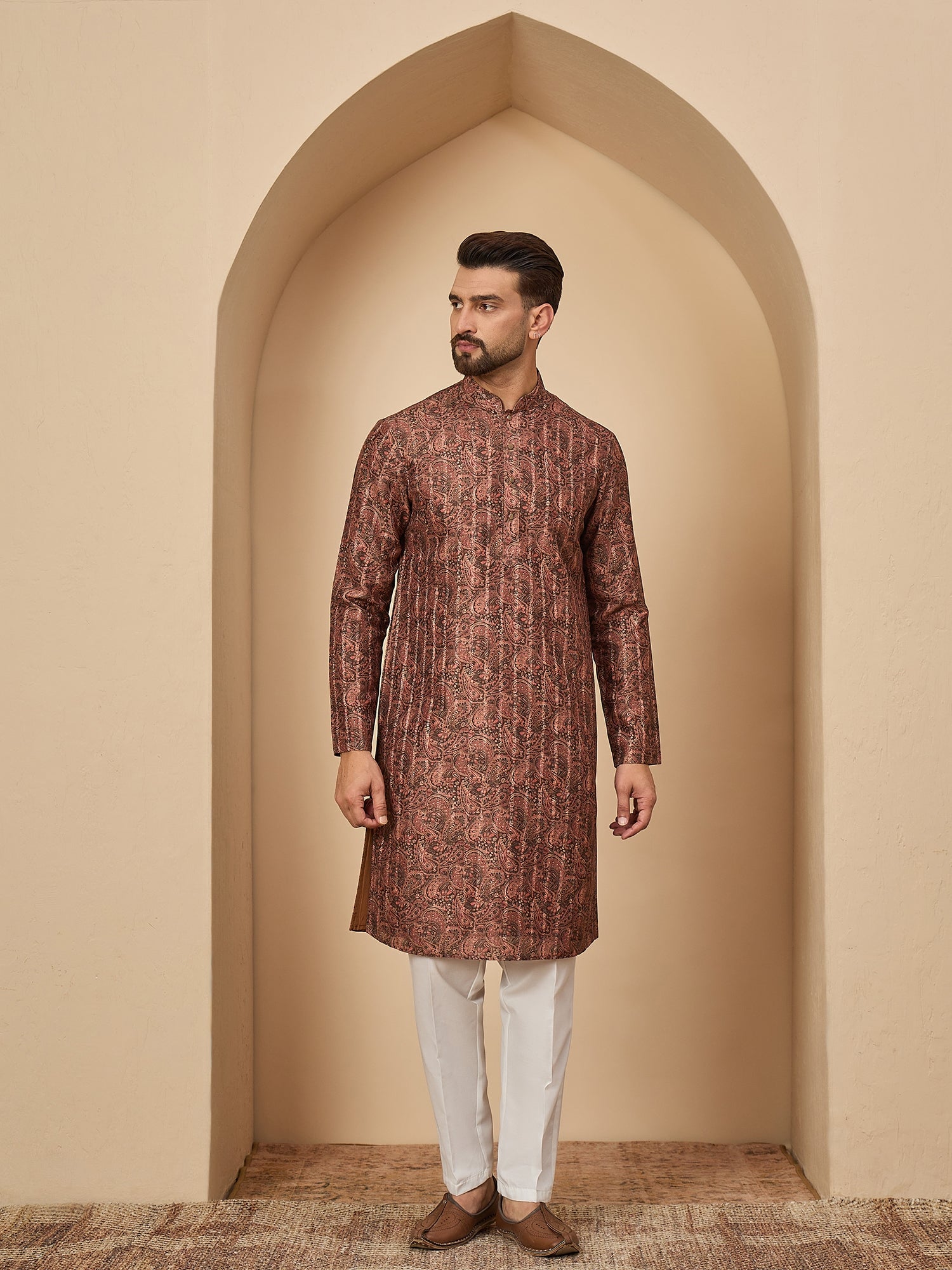 Men Pink Bandej Print Self Design Kurta Trouser Set